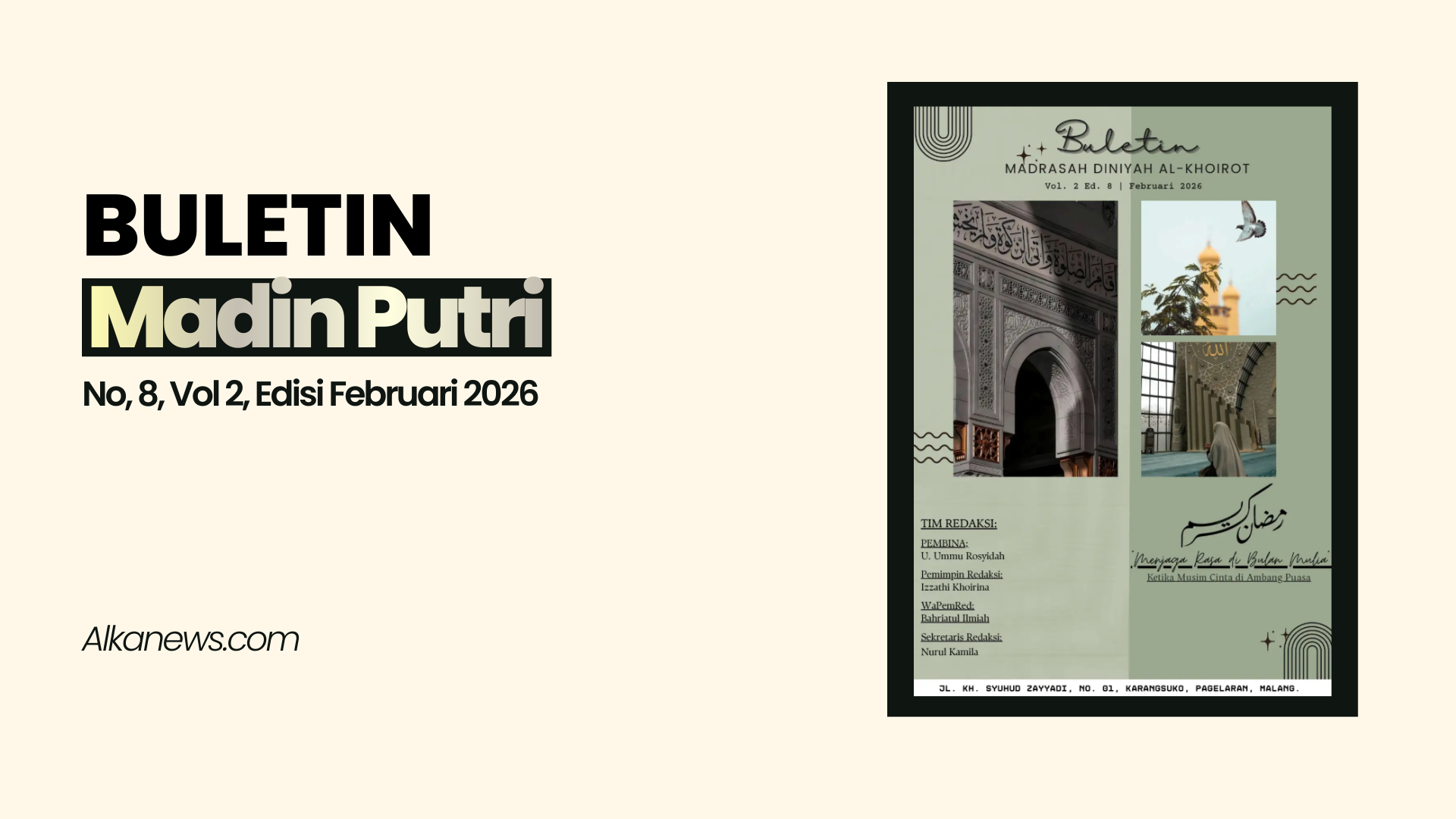 Buletin Buletin Madrasah Diniyah Al-Khoirot Putri | Vol, 2 Edisi 8 | Februari 2026 28 Februari 2026 Madin Alkhoirot Putri Written by Madin Alkhoirot Putri Madin Alkhoirot Putri+ postsBio Madin Alkhoirot PutriBuletin Madin Putri, Vol 02, Edisi 7, Januari 2026Madin Alkhoirot PutriBuletin Madin Putri Edisi 06/Vol No.1 Desember 2025Madin Alkhoirot PutriBuletin Madin Al-Khoirot Putri No.05/ Vol.01 / Edisi November 2025Madin Alkhoirot PutriBuletin Madin Putri No. 04 Vol. 1 Edisi Oktober 2025Madin Alkhoirot PutriBuletin Madin Al-Khoirot Putri No.03 Vol .01 Edisi September 2025Madin Alkhoirot PutriBuletin Madin Al-Khoirot Putri No. 0 2 / Vol. 01 Edisi Agustus 2025Madin Alkhoirot PutriBuletin Madin Al-Khoirot Putri No.01 Vol.1 Edisi. Juli 2025