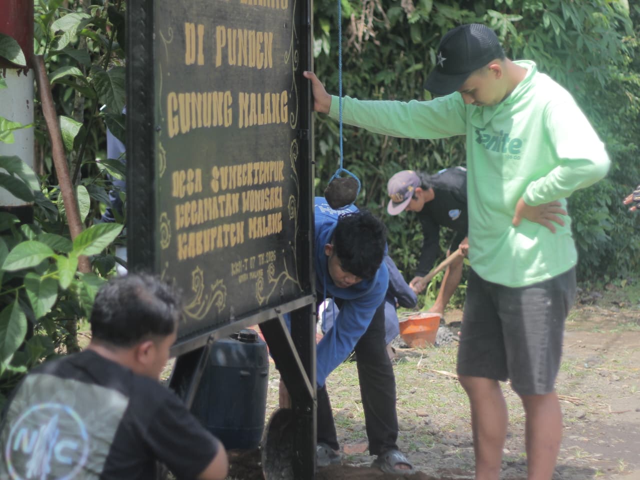 Kenalkan Situs Bersejarah Desa, Mahasiswa KKN-T 07 UNIRA Malang Pasang Plang “Selamat Datang di Punden Gunung Malang”